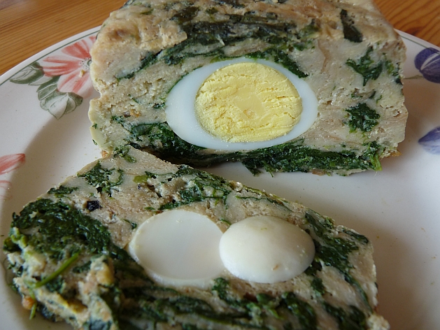 Darauf die vier wachsweich gekochten, gepellten Eier legen; mit der restlichen Knödelmasse bedecken.